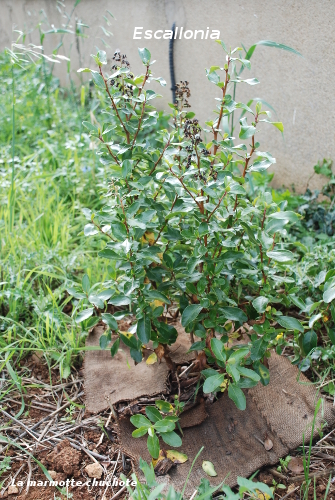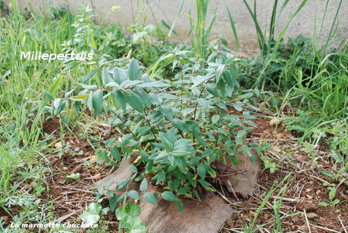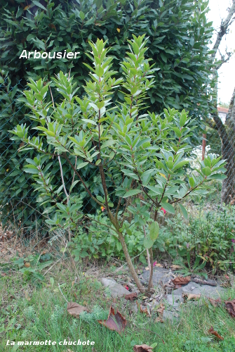- Arbousier (Arbustus Unedo) : j’ai choisi l’arbousier pour ses fruits à consommer de préférence cuits, sa rusticité et ses feuilles persistantes.