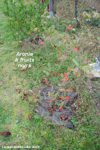 - Aronie à fruits noires (Aronia mellocarpa) : une fois de plus, cet arbuste a été choisi pour ses fruits comestibles ou pour nourrir les oiseaux l’hiver.