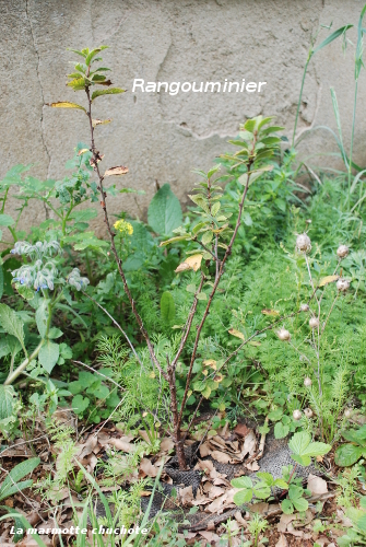 - Amelanchier (Amelanchier canadensis ou lamarckii?) : je l’ai choisi pour ses fruits comestibles, à consommer en gelée et son feuillage orangé d’automne.