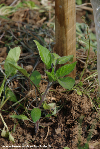 Repiquage et Plantation : Repiquer dans des godets (pots de yaourts…) quand les plants ont 5-6 feuilles (environ 1 mois plus tard). Garder au chaud avec une luminosité suffisante. Planter en place dans le potager à partir de mi-mai dans un sol riche (ajout de compost, de fertilisants) en pensant à mettre un tuteur avant la plantation.