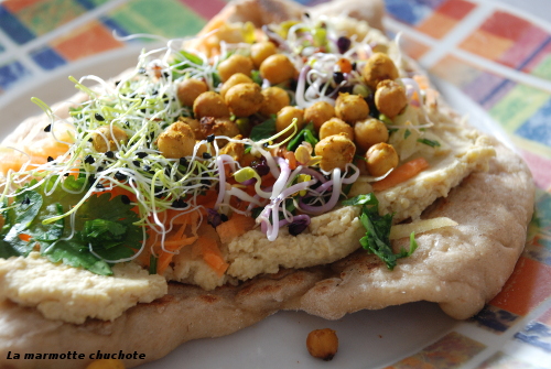 Pain pita maison, houmous, pois chiches grillés au épices et salade – La fée Stéphanie