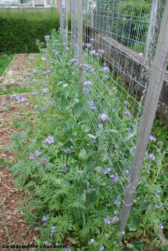 Dans les semaines qui viennent, il me reste à planter les choux, les poireaux, les haricots verts et à grains. Je dois refaire des semis de salades mais aussi de betteraves, blettes et panais qui n’ont pas très bien levé. Je vais aussi faire un purin de consoude lorsque mon purin d’orties sera prêt. En attendant, les petits pois et les fèves sont en fleurs. Malheureusement, mon association phacélie – fèves n’a pas empêché l’arrivée des pucerons.