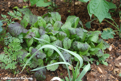 Coté réussite, je suis très fière d’obtenir des choux à partir de semis pour la première fois cette année. Coté déception, les carottes, poireaux, salades, betteraves ont très mal poussé. Je pense que certaines graines sont un peu trop vieilles. C’est la première fois cette année que je me retrouve avec des emplacements vides dans le jardin.